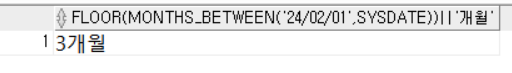 SELECT FLOOR(MONTHS_BETWEEN('24/02/01',SYSDATE)) || '개월'