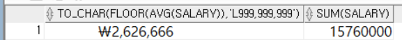 SELECT TO_CHAR(SUM(SALARY),'L999,999,999') AS D5부서월급합계