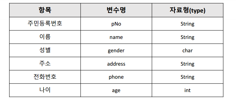회원관리 프로그램을 만든다고 가정해보자. 위 표와 같이 회원정보에 필요한 항목들을 정리하고 해당 항목의 변수와 자료형을 정하여 추상화 결과물을 도출해 낼 수 있다. 이렇게 추상화한 결과를 토대로 우리는 프로그래밍 언어를 사용해서 각 데이터를 저장할 수 있는 저장소를 선언 및 사용할 수 있다.